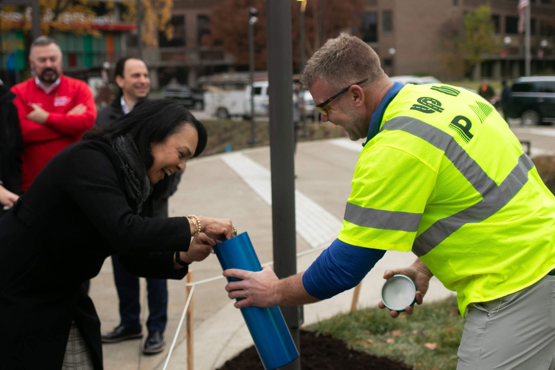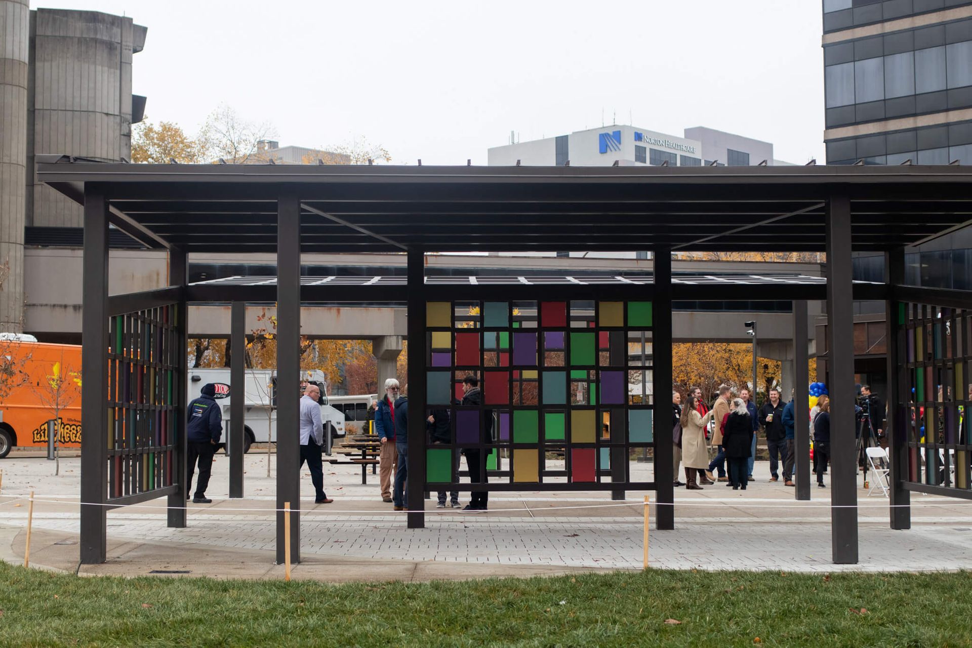 We are so happy to share that LOUMED Commons is now open and welcoming visitors. This new park in the heart of the Louisville Medical & Education District offers a comfortable place to connect, recharge and enjoy fresh air. The opening day celebration brought the community together through a press conference, a time capsule moment and food trucks and live music that helped mark the occasion.